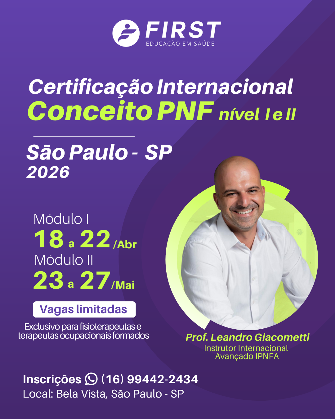 - Instrutor Internacional Avançado do conceito PNF;